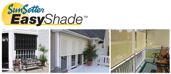 - The Motorized Easyshade extends down 7ft and blocks 90% of sun and mist. The manual version extends 6.5 ft. and blocks 80% of sun and mist. Both models can be partially rolled down.